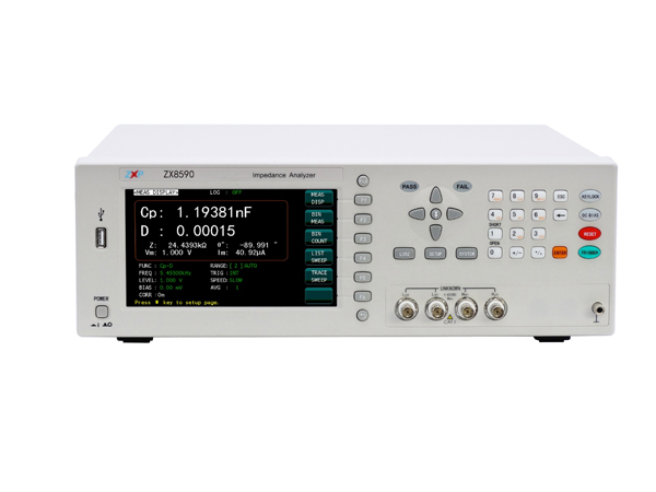 ZX8590系列高頻精密阻抗分析儀:使用自動(dòng)平衡電橋技術(shù)及四端對開爾文測試端、測量頻率范圍涵蓋20Hz~25MHz,最小分辨率1mHz,基本測量精度可達(dá)0.05%。